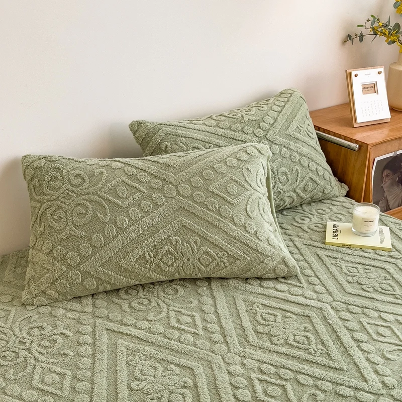 Turn your bed into a cozy haven with our 3D Engraved Taffeta Bedsheet! Enjoy a smooth, perfect fit and a touch of luxury every night. The fabric feels like Soft, plush, and incredibly warm, it’s perfect for those chilly nights, offering the perfect blend of warmth and relaxation.
